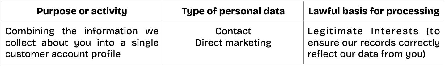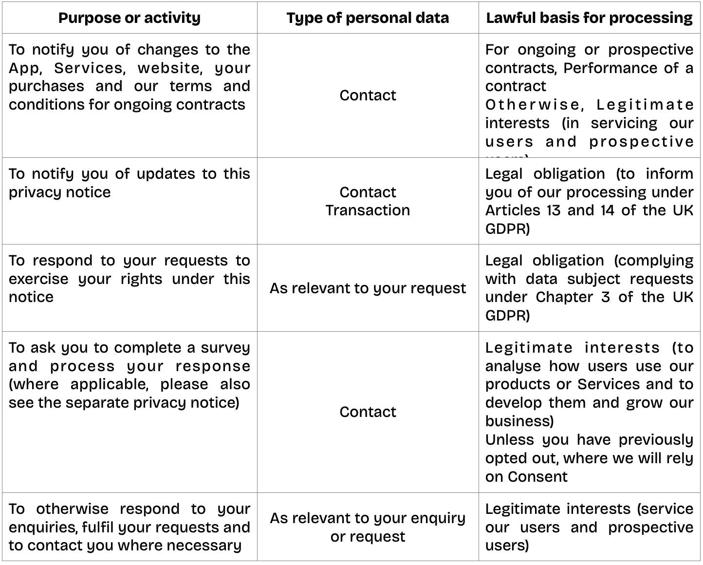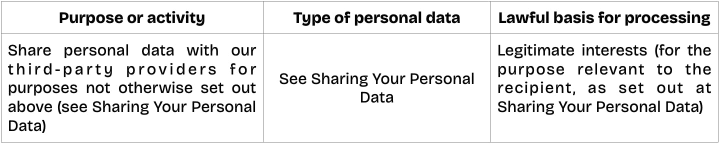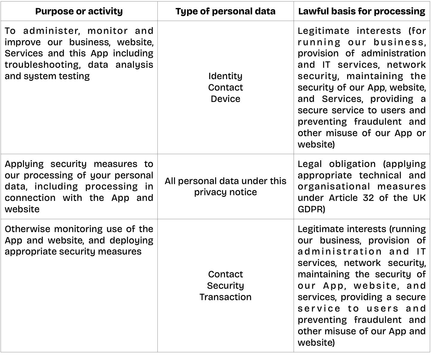 We have set out below, in a table format, a description of all the ways we plan to use the various categories of your personal data, and which of the legal bases we rely on to do so. We have also identified what our legitimate interests are where appropriate.